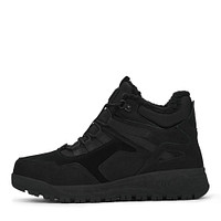 Актуальные серые ботинки в стиле треккинговой обуви. Комбинированный верх - плотный нубук со вставками из бархатистого спилка. Шерстяные подкладка и стелька поддерживают комфортную температуру внутри пары на улице и в помещении. Высокая подошва из ТЭП с выраженными протекторами отличается легкостью, морозоустойчивостью и хорошим сцеплением с поверхностью.