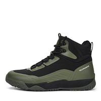 Актуальные черные ботинки в стиле треккинговой обуви. Верх комбинирует плотный дышащий текстиль и прочный, влагонепроницаемый ТПУ. Кожаная подкладка и текстильная стелька обеспечивают комфорт стоп. Высокая резиновая подошва отличается прочностью и надежным сцеплением с любой поверхностью.