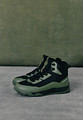 Актуальные черно-зеленые ботинки в стиле треккинговой обуви. Верх комбинирует плотный дышащий текстиль и прочный, влагонепроницаемый ТПУ. Кожная подкладка и текстильная стелька обеспечивают комфорт стоп. Высокая резиновая подошва отличается прочностью и надежным сцеплением с любой поверхностью.