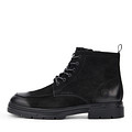 Высокие ботинки с боковой молнией на облегающем голенище выполнили из нубука с потертостями. Цвет модели - чёрный. Внутренняя подкладка из войлока гарантирует комфорт даже при низких температурах. Прочная подошва высотой 4 см из резины надежно защищает от скольжения.