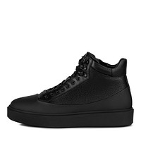 Мужские кеды из новой коллекции выполнены из крупнозернистой кожи глубокого синего оттенка с усиленной шнуровкой. Полиуретановый наплыв в виде галош защитит от любых атмосферных и механических воздействий. Подкладка из бархатистого ворсина способствует оптимальному микроклимату внутри обуви как на улице, так и в помещении.