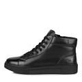 Лаконичные высокие кеды выполнены из гладкой кожи черного цвета. Широкая гибкая подошва улучшает амортизацию при ходьбе. Для ощущения повышенного комфорта: мягкий кант и дополнительная молния. Подкладка из густой стриженной овчины не даст ногам замерзнуть даже во время долгих прогулок.
