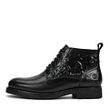 Классические черные ботинки с декоративным тиснением на берцах. Материал верха - гладкая натуральная кожа. Пара утеплена мехом для максимальной теплоизоляции обуви. Утолщенная резиновая подошва отличается прочностью и хорошим сцеплением с любой, даже самой скользкой, поверхностью. Модель фиксируется шнурками и удобно застегивается на молнию.