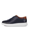 Минималистичные синие кожаные кеды. Подкладка изготовлена из мягкой натуральной кожи, стелька — из нежной кожи шевро. Модель со шнуровкой и утолщенным воротом. Высокая подошва из полиуретана обеспечивает оптимальную поддержку стоп.
