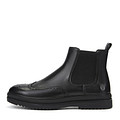 Классические черные челси с деликатным брогированием на носовой части. Материал верха - натуральная кожа. Подкладка и стелька утеплены ворсином. Утолщенная ребристая подошва из резины отличается прочностью и хорошим сцеплением на любой поверхности.