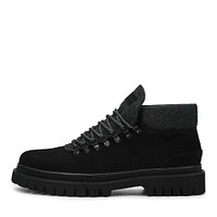 Повседневные коричневые ботинки, вдохновленные рабочей обувью. Верх выполнен из бархатистого нубука и дополнительно утеплен серыми вставками из войлока. Подкладка и стелька из мягкого ворсина обеспечивают оптимальную терморегуляцию внутри модели. Утолщенная рифленая подошва из резины отличается устойчивостью на любых поверхностях.