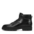 Универсальные черные ботинки с высокой шнуровкой. Верх выполнен из гладкой натуральной кожи. Утолщенный ворот бережно поддерживает зону щиколоток. Подкладка и стелька из мягкой натуральной шерсти поддерживает комфортную температуру внутри обуви на улице и в помещении. Высокая резиновая подошва с выраженными протекторами отличается прочностью и идеальным сцеплением с любой, даже самой скользкой, поверхностью.