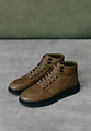 Минималистичные кеды цвета хаки. Материал верха - мягкий нубук. Подкладка и стелька модели утеплены ворсином. Утолщенная резиновая подошва отличается износостойкостью и помогает амортизировать нагрузку на стопы. Шнуровка обеспечивает надежную фиксацию обуви на ноге.
