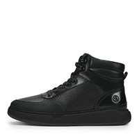 Базовые высокие кеды в классическом черном оттенке. Верх выполнен из практичной натуральной кожи и дополнительно укреплен ПВХ для максимальной защиты от внешней влаги. Для ускорения процесса фиксации пары предусмотрена удобная молния. Подкладка и стелька утеплены мягким ворсином. Комбинированная подошва из резины и полиуретана отлично амортизирует нагрузку и обеспечивает надежное сцепление с любой поверхностью.