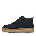 Базовые синие ботинки. Верх выполнен из натурального нубука с бархатистой текстурой. Подкладка и стелька утеплены натуральной шерстью и поддерживают комфортную температуру внутри обуви. Высокая резиновая подошва с выраженными протекторами отличается прочностью и хорошим сцеплением с поверхностью. Модель фиксируется шнурками и удобно застегивается на молнию.