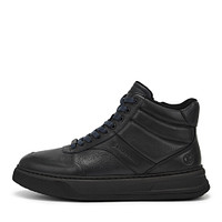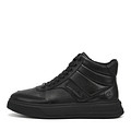 Высокие демисезонные кеды выполнены из натуральной кожи. Модель чёрного цвета. Подкладка и стелька из ворсина. Пара декорирована оттисками-логотипов сбоку и на заднике. Высокая подошва 34 мм из материала ЭВА отличается легкостью и хорошими амортизирующими свойствами.