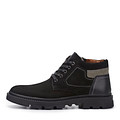 Повседневные черные ботинки на холодный сезон. Верх выполнен из плотного бархатистого и дополнительно укреплен натуральной кожей. Шерстяные подкладка и стелька поддерживают оптимальную терморегуляцию стоп. Утолщенная подошва из материала ТЭП отличается легкостью, морозоустойчивостью и хорошим сцеплением с поверхностью. Модель фиксируется шнуровкой и удобно застегивается на молнию.