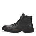 Повседневные черные ботинки с утеплителем из натуральной шерсти. Верх выполнен из гладкой кожи. Утолщенный ворот бережно поддерживает зону щиколоток, не сковывая движений. Высокая подошва из материала ТЭП с выраженными протекторами отличается легкостью, морозоустойчивостью и хорошим сцеплением с поверхностью. Модель с высокой шнуровкой и удобной застежкой на молнию.