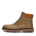 Актуальные ботинки в стиле рабочей обуви в светло-коричневой гамме. Верх выполнен из бархатистого нубука разных оттенков. Подкладка и стелька утеплены натуральной шерстью. Для удобства фиксации пары предусмотрена молния. Утолщенная подошва с выраженными протекторами из материала ТЭП остается устойчивой на любой поверхности.