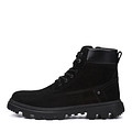 Актуальные черные ботинки в стиле рабочей обуви. Верх выполнен из бархатистого нубука, ворот дополнительно укреплен прочной КРС. Подкладка и стелька утеплены натуральной шерстью. Для удобства фиксации пары предусмотрена молния. Утолщенная подошва с выраженными протекторами из материала ТЭП остается устойчивой на любой поверхности.