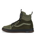 Футуристичные высокие кеды в трендовом цвете хаки. Верх комбинирует ворсистые фактуры прочного спилка и плотного нубука. Шерстяная стелька обеспечивает комфортную терморегуляцию стоп. Широкая подошва из ТЭП отличается легкостью, морозоустойчивостью и хорошим сцеплением с поверхностью. Модель фиксируется шнуровкой и удобно застегивается на молнию.