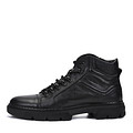 Базовые черные ботинки на холодный сезон. Верх комбинирует гладкую и зернистую натуральную кожу. Ворот бережно поддерживает зону щиколоток. Шерстяные подкладка и стелька обеспечивают комфортную терморегуляцию стоп. Утолщенная подошва из материала ТЭП с выраженными протекторами отличается легкостью, морозоустойчивостью и хорошим сцеплением с любой поверхностью.