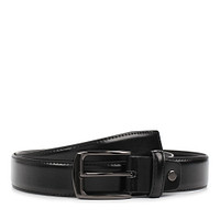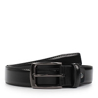 Универсальный кожаный ремень черного цвета с гладкой фактурой. Модель с классической металлической пряжкой, которая отличается прочностью.