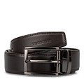 Универсальный кожаный ремень коричневого цвета. Модель с классической пряжкой в цвете металлик и логотипом.