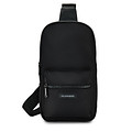 Компактная мужская сумка кросс-боди в универсальном черном цвете. Верх выполнен из плотного непромокаемого текстиля, внутри - одно отделения для самых важных вещей. Модель удобно застегивается на молнию. Широкая лямка не скользит с плеч и обеспечивает комфортное ношение.