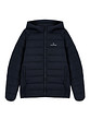 Куртка-бомбер с наполнителем из натурального пуха. Модель дополнена стильным капюшоном. Хорошо согревает и защитит от холода.