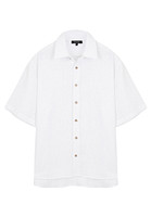 Однотонная рубашка с отложным воротником с короткими рукавами из 100% льна идеально подходит для создания образов в летний период. Легкая и воздушная, она одинаково хорошо подходит как для офиса, так и для отдыха.