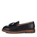 Элегантные кожаные лоферы черного цвета. Подкладка из натуральной кожи и мягкая стелька из шевро идеально облегают стопу и дарят ощущение комфорта в течение всего дня. Миндалевидный мыс, кисточки и рельефный шов союзки не нарушают общей лаконичности дизайна туфель-лоферов.