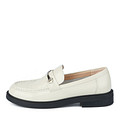 Минималистичные белые лоферы из натуральной кожи, которая обеспечивает комфортный воздухообмен и идеальную посадку. Женские лоферы на толстой подошве дополнены рельефным швом и декором из металла. Модель отлично впишется в демисезонный гардероб.