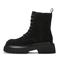 Классические черные ботинки с высокой шнуровкой. Верх выполнен из бархатистого и прочного нубука. Подкладка и стелька утеплены ворсином. Массивная подошва из материала ЭВА хорошо амортизирует нагрузку и отличается прочностью.