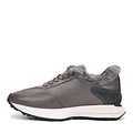 Эффектные теплые кроссовки с подкладкой из натурального меха. Пара изготовлена из мягкой прочной кожи серого оттенка с матовым блеском. Замшевую фигурную накладку на заднике дополнили резиновой контрастной вставкой. Двухсторонний рисунок протектора у резиновой подошвы способствует улучшенному сцеплению с любой поверхностью.