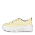 Высокие кеды на платформе в светло-желтом цвете. Верх и подкладка повседневных кед выполнены из натуральной кожи. Гибкая подошва из материала ЭВА обладает отличной амортизацией. Модель дополнена петлей в пяточной части для удобства надевания обуви. Кожаные кеды подходят для повседневных образов и аутфитов в спортивном стиле.