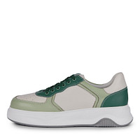 Трендовые бежевые кеды с верхом из натуральной кожи и спилка. Комфорт стоп обеспечивают текстильная подкладка и кожаная стелька. Гибкая подошва из полиуретана гарантирует оптимальную поддержку. Пара отлично впишется в образы с брюками, шортами и юбками.