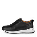 Графичные черные кожаные кроссовки. Дополнительный комфорт стоп и идеальную посадку обеспечивают кожаная подкладка и стелька из шевро. Мягкий ворот бережно поддерживает щиколотки. Модель дополнена практичной петлей в пяточной части, ускоряющей процесс надевания демисезонной обуви. Высокая подошва из резины отличается прочностью.