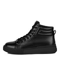 Базовые высокие кеды в лаконичном черном цвете. Верх выполнен из гладкой натуральной кожи. Утолщенный ворот бережно фиксирует зону щиколоток, не сковывая движений. Подкладка и стелька утеплены мягкой шерстью для комфорта стоп на улице и в помещении. Высокая резиновая подошва отличается прочностью и хорошим сцеплением с любой поверхностью.
