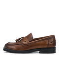 Трендовые кожаные лоферы рыжего цвета. Подкладка и мягкая стелька из шевро идеально облегают стопу и дарят ощущение комфорта в течение всего дня. Миндалевидный мыс, кисточки и рельефный шов союзки не нарушают общей лаконичности дизайна туфель-лоферов.