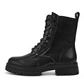 Высокие ботинки на устойчивом квадратном каблуке выполнили из натуральной кожи. Цвет пары - чёрный. Модель с усиленной шнуровкой и двумя боковыми молниями утеплили ворсином. Продуманная конструкция подошвы из прочной резины обеспечивает надежное сцепление и демонстрирует устойчивость к истиранию. Высота каблука 43 мм.