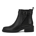Ботильоны на массивном высоком каблуке 50 мм выполнили из гладкой натуральной кожи. Пара выполнена в классическом чёрном цвете. Ширина голенища регулируется перекрещивающимся ремешком, украшенным брендированной металлической пряжкой. О комфорте стоп в любую погоду заботятся подкладка и стелька из мягкого ворсина. Подошва из высококачественной резины гарантирует устойчивость и безопасность при ходьбе, а также длительный срок службы модели.