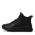 Чёрные высокие кроссовки из мелкозернистой натуральной кожи. Модель дополнена боковой молнией для удобной фиксации. Язычок декорирован фирменной эмблемой. Подкладка и стелька демисезонной обуви выполнена из ворсина. Кроссовки на высокой подошве из резины хорошо амортизируют нагрузку при ходьбе.