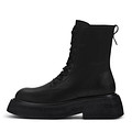 Черные ботинки с высокой шнуровкой на массивной платформе. Верх выполнен из практичной натуральной кожи. Подкладка и стелька утеплены мягким ворсином. Высокая подошва из материала ЭВА отлично амортизирует нагрузку на стопы.