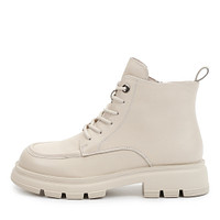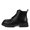 Элегантные женские ботинки в черном цвете. Верх выполнен из гладкой натуральной кожи. Подкладка и стелька утеплены мягким ворсином. Высокая тракторная подошва из резины отличается прочностью и надежным сцеплением с любой поверхностью. Модель в стиле высоких дерби фиксируется шнурками и удобно застегивается на молнию.