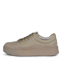 Бежевые женские кеды в стиле "нулевых" из натуральной кожи и спилка. Легкая модель с подкладкой и стелькой, выполненными из натуральной кожи, формирует комфортный воздухообмен и идеальную посадку пары. Гибкая подошва из резины быстро адаптируется под движения стопы. Модель со шнуровкой и утолщенным воротом.