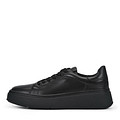 Практичные черные кожаные кеды на платформе. За комфорт стоп отвечают мягкие кожаные подкладка и стелька. Подошва из материала ТЭП поддерживает стопы в оптимальном положении и отличается прочностью. Модель с надежной шнуровкой и утолщенным воротом.