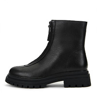 Базовые темно-коричневые ботинки с функциональной молнией спереди. Материал верха - практичная натуральная кожа. Подкладка и стелька утеплены мягким ворсином. Утолщенная резиновая подошва обеспечивает устойчивость на любой поверхности.