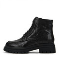Классические черные ботинки на холодный сезон. Верх с трендовым эффектом мятой кожи. Подкладка и стелька утеплены натуральной шерстью для комфортного теплообмена внутри обуви. Высокая резиновая подошва с выраженными протекторами отличается прочностью и хорошим сцеплением с любой поверхностью. Модель фиксируется шнурками и удобно застегивается на молнию.
