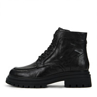 Классические коричневые ботинки на холодный сезон. Верх с трендовым эффектом мятой кожи. Подкладка и стелька утеплены натуральной шерстью для комфортного теплообмена внутри обуви. Высокая резиновая подошва с выраженными протекторами отличается прочностью и хорошим сцеплением с любой поверхностью. Модель фиксируется шнурками и удобно застегивается на молнию.