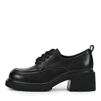 Акцентные кожаные черные полуботинки на каблуке и платформе. За комфорт стоп отвечают подкладка и стелька, выполненные из мягкой натуральной кожи. Высокая подошва из полиуретана обеспечивает хорошее сцепление с поверхностью и поддерживает стопы в оптимальном положении. Модель с прочной шнуровкой и петлей на вороте.