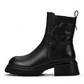 Лаконичные черные ботинки с актуальном эффектом помятой кожи. Натуральный верх эффективно защитит от ветра и слякоти. Подкладка и стелька утеплены натуральной шерстью. Высокая подошва из материала ЭВА обладает хорошими амортизирующими свойствами. Блочный каблук высотой 5,3 см грамотно распределяет нагрузку на стопы.