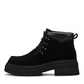 Базовые черные ботинки с контрастной строчкой. Верх сочетает бархатистый спилок и нежную кожу шевро, создавая трендовую игру фактур. Подкладка и стелька утеплены натуральной шерстью. Высокая подошва из материала ТЭП отличается прочностью и обеспечивает хорошее сцепление с любой поверхностью