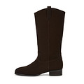 Коричневые сапоги с парными петлями на широком голенище изготовили из бархатистого спилка. Внутренняя подкладка из ворсина создает ощущение тепла и уюта даже в прохладную погоду. Прочная резиновая подошва гарантирует надежное сцепление с поверхностью и уверенность при ходьбе. Благодаря каблуку в 36 мм обувь смотрится особенно изящно, подчёркивая женственность походки.