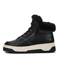 Теплые черные ботинки в спортивном стиле. Материал верха - текстурированная кожа из спилка. Подкладка и стелька выполнены из натуральной шерсти. Резиновая подошва отличается прочностью и хорошим сцеплением с поверхностью.
